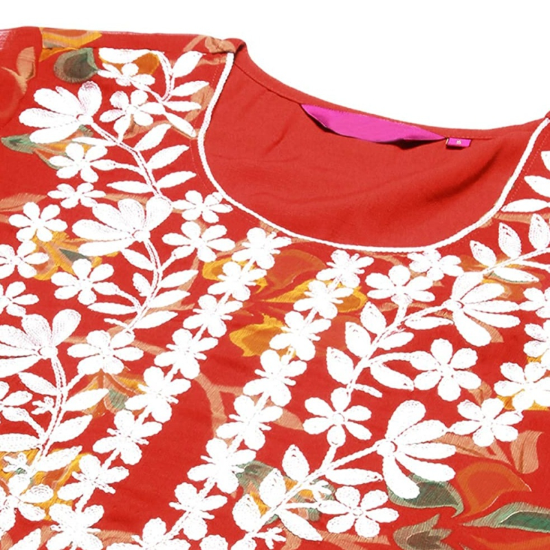 ANNI DESIGNER Women's Printed Georgette Chikankari Embroidered Kurti