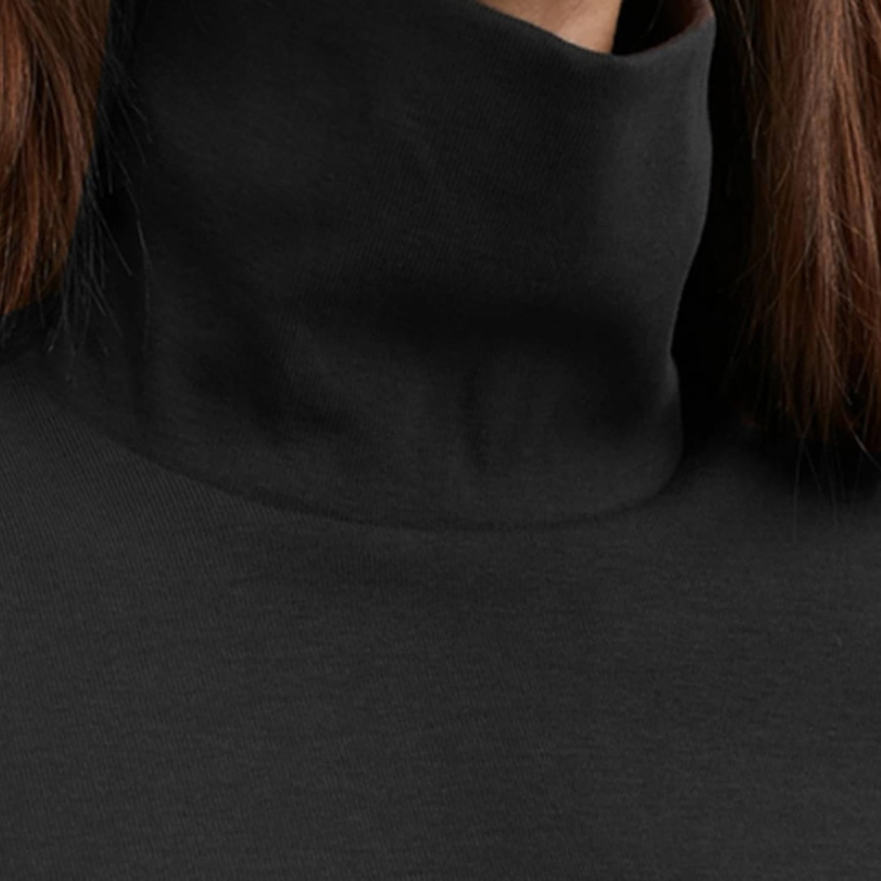 Women Black Solid Turtle Neck T-shirt
