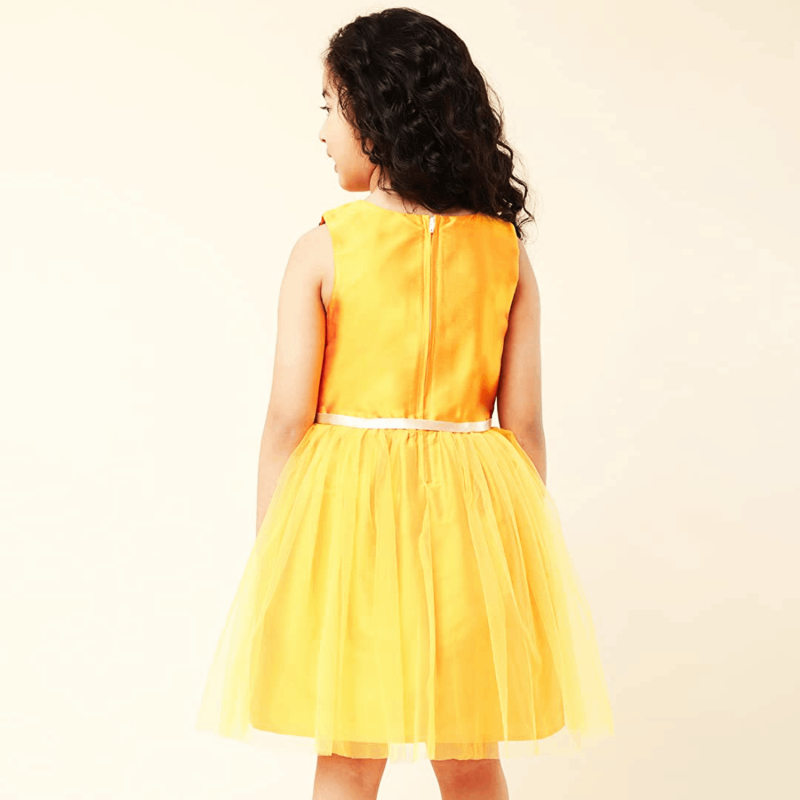 • Its one of a kind embroidered dresses in the most amazing colors and silhouettes. A flared skirt with tulle overlay makes it a comfortable option to adorn. Sateen belt attached along the waist and a zip along the back.