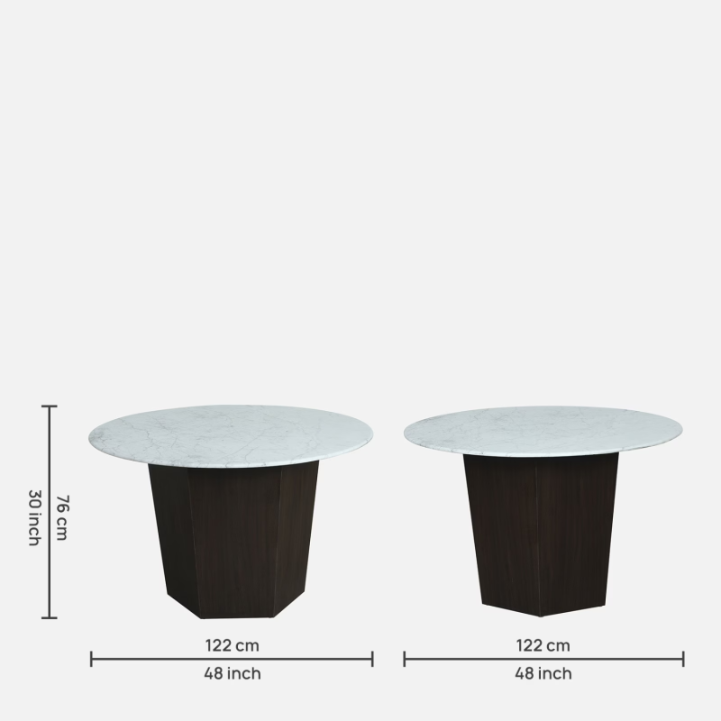 • Dimensions (In Centimeters): Table: H 76 x W 122 x D 122; Chair: H 76 x W 58 x D 58