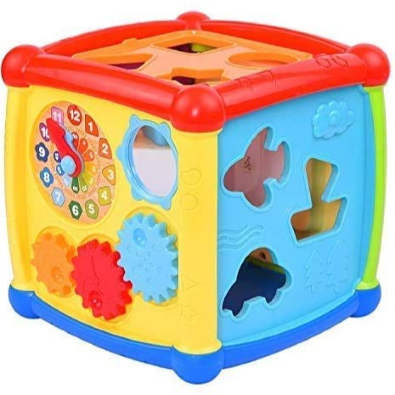 • 6 in 1 Multi-function - The baby sorting toy includes shape block,alphabet block, vehicles blcok,alphabet cognition,music learning and time learning center. Exquisite mirror and rotatable gears of cute colorful Cube is enough to attract the baby's attention,the most important is that it can be used as excellent block storage box
