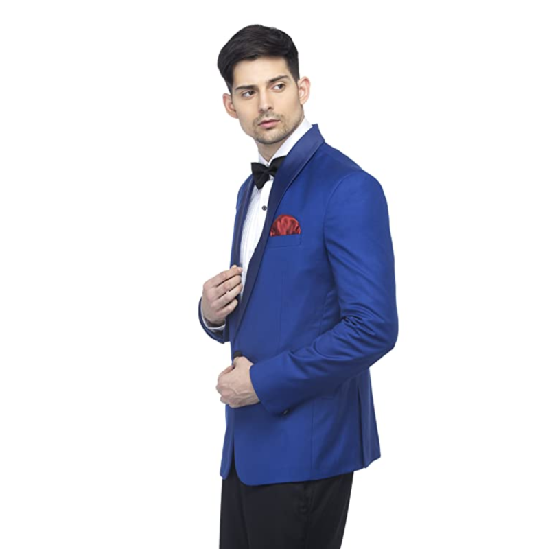 FAVOROSKI Designer Men's Solid Poly Viscose Slim Fit Shawl Collar Tuxedo Suit Blazer