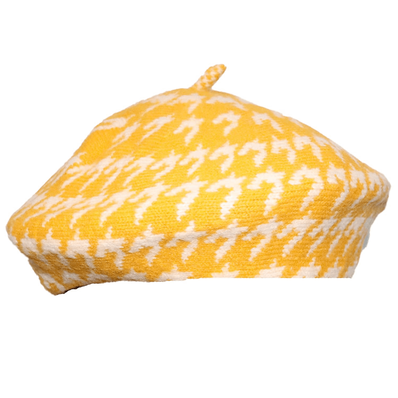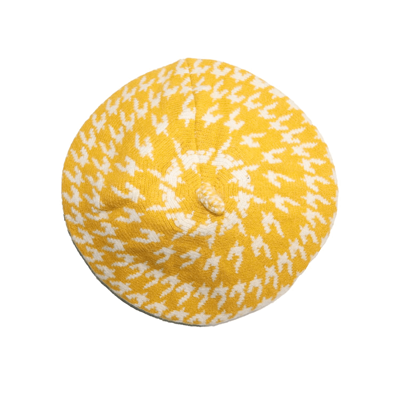 French Beret Mélange Fabric Winter Cap Hat White/Yellow