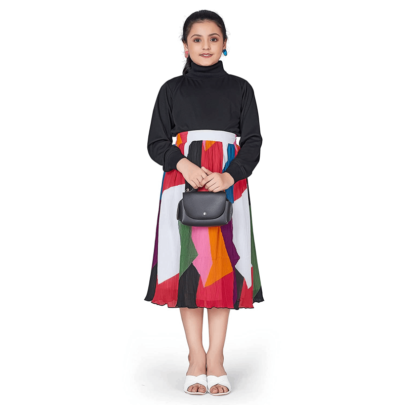 • Let add a delicate touch of femininity with this beautiful solid top and accordion pleated skirt sets to your look.