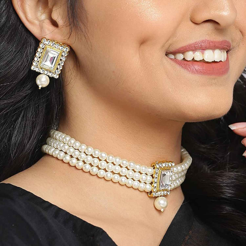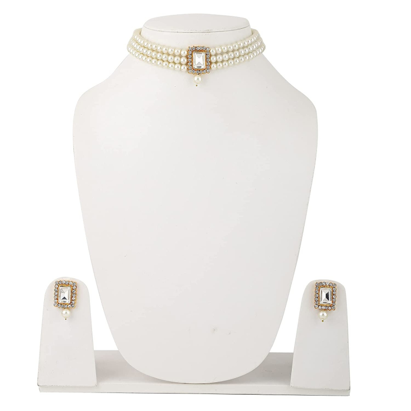 • Stylish pearl choker necklace set for women. You will always be the center of attraction by wearing this jewelry set. Wear it with any traditional or modern outfit for bringing elegance to you.