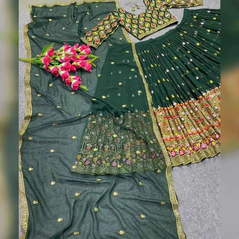 The 3D design adds a layer of depth and intricacy, creating an eye-catching visual effect that beautifully complements the vibrant colour palette. The dupatta, a traditional scarf, is an elegant addition to this ensemble and enhances comfort and style. The Designer Net 3D Work Lehenga Choli with Dupatta in Green is perfect for various occasions such as parties, weddings, and celebrations. Its lightweight and breathable fabric ensures that you can fully enjoy the festivities without feeling weighed down. The soft net material offers comfortable wear, even during prolonged use. The lehenga is designed to flatter all body types, providing a stylish and flattering silhouette that is both elegant and practical.