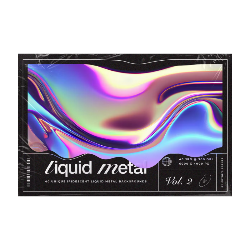 Introducing Liquid Metal | Iridescent Trend. It's a second volume of our Liquid Metal collection. Liquid iridescent metal graphic textures are digital graphic design elements that mimic the appearance of liquid metal with an iridescent or metallic shine. These textures are created using a combination of digital art techniques. They can be used in a variety of design projects, including websites, logos, print materials, and digital media such as Instagram.
