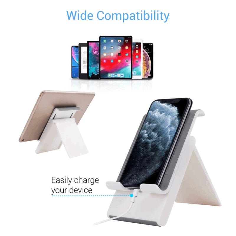 • [ADJUSTABLE HEIGHT & SUITABLE VIEWING ANGLES] - Holds your device in vertical and horizontal positions, and height can be adjusted from 5.0-6.4 inches and angles from 54°-70°. PERFECT FOR HANDSFREE WATCHING VIDEOS, FACETIME, & READING