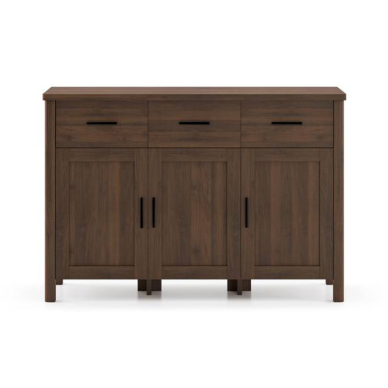 • A little bit modern. A little bit classic. The Norland family blends warm wood tones with transitional lines and a sleek, lightweight structure to suit most décor styles. The sideboard’s drawers make room for cutlery and napkins, while the cupboards below are perfect to keep your delicate crockery safe. The broad top doubles as a serving station, letting you offer extra helpings of everything without another trip to the kitchen.