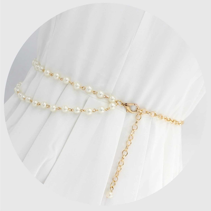 • No matter a night dress for prom or a casual blouse, this pearl belt will be sure to match perfectly. Available for daily use and special occasions like weddings, family gathering and party.