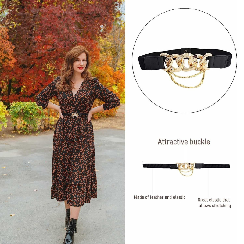 • Leather Belts: Stretchy waist belt with interlocking buckle are easy for you to open and fasten, you can use them to match with skirts, dresses, jeans, sweater and coat, make you look more attractive and chic