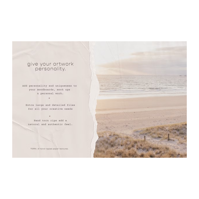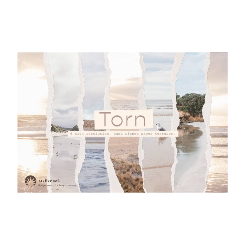 TORN | Hand ripped paper textures have been created specifically for designers & creatives looking to create eye-catching work without the hassle of setting up individual assets. All elements in this set have been torn by hand creating beautifully textured rips and tears, scanned and converted to high-resolution, transparent .png files.