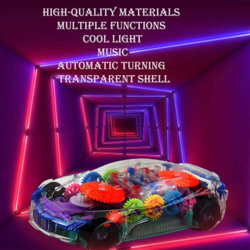• Transparent Concept Racing Car with 3D Flashing Lights car with functions: Forward/ Backward, Stop. Unique Design - Transparent design, one Can see the gear inside, helps the kids to know mechanical concept.