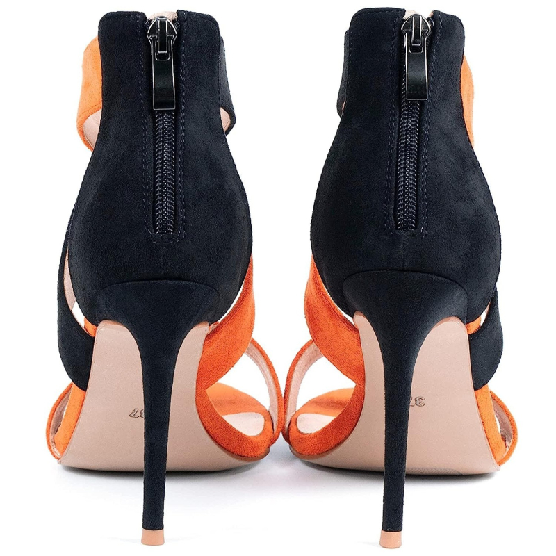 Womens Cutout Stiletto High Heels Ankle Strap Open Toe Stacked Heeled Sandal for Casual